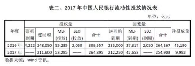根据货币政策调控需要和银行体系流动性状况,中国人民银行综合运用中期借贷便利(MLF)、常备借贷便利(SLF)等货币政策工具,进一步增强央行流动性管理的灵活性和有效性,保持银行体系流动性基本稳定。2017年,人民银行在公开市场累计开展逆回购操作21.16万亿元,累计开展中期借贷便利操作5.33万亿元,维护银行体系流动性中性适度、基本稳定。为反映经济基本面企稳向好和货币市场利率中枢上行,第一季度两次上调常备借贷便利利率,其中7天、1个月利率分别上调20个基点,引导货币市场平稳运行。