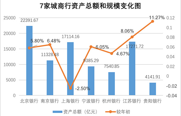 北京银行牢牢占据着城商行老大哥的位置。截至今年上半年,北京银行的资产规模达到22391.67亿元,占7家A股上市城商行资产总额的四分之一。