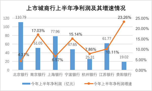 2017年上半年,7家A股上市城商行的净利润增速呈现分化特征。