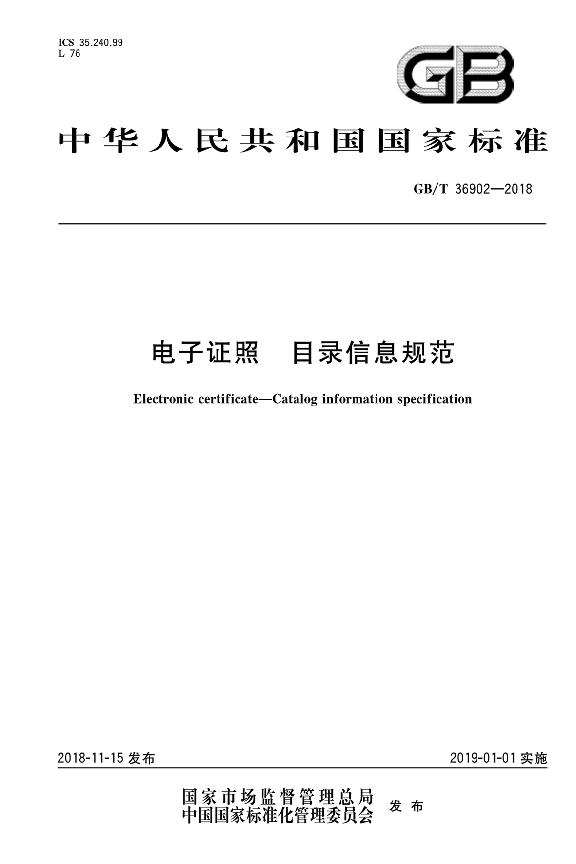 GBT 36902-2018 电子证照 目录信息规范