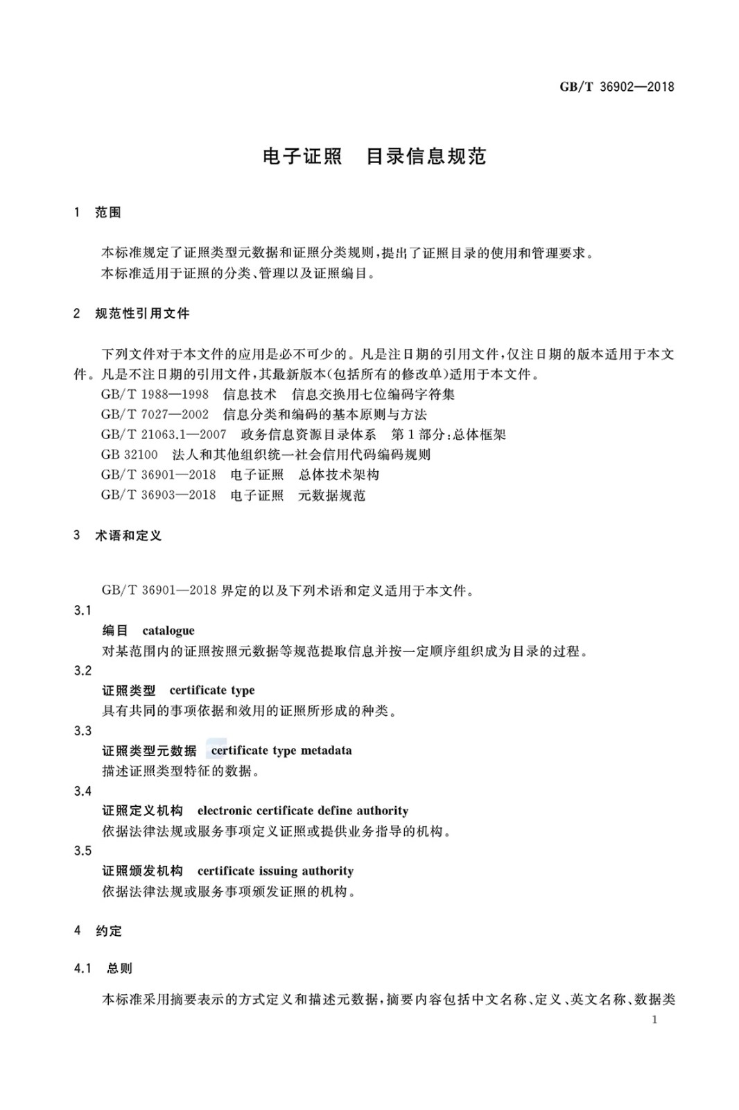 GBT 36903-2018 电子证照 元数据规范